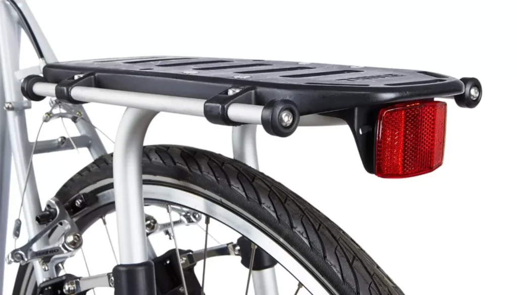 • Конструктивные особенности. Хороший багажник снабжён мощными стойками с возможностью регулировки под размер колёс. Желательно наличие дополнительных рёбер жёсткости и узких перемычек, не мешающих педалированию.